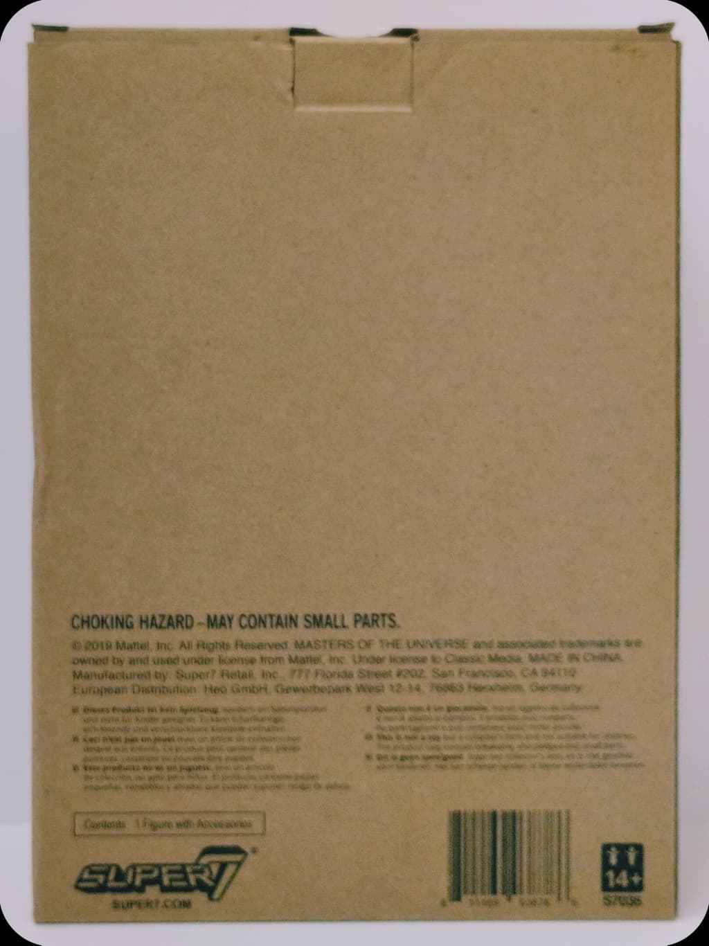 Produto: Em 2019, a Super7, licenciada pela Mattel, lança a linha de figuras do filme de 1987, Masters Of The Universe: The Motion Picture. Há escala dos Classics, esta figura de 18 cm de altura, com vários pontos de articulação, foi fielmente produzida à semelhança do ator Dolph Lundgren, que interpretou He-Man, o homem mais poderoso do Universo. Contém também vários acessórios.